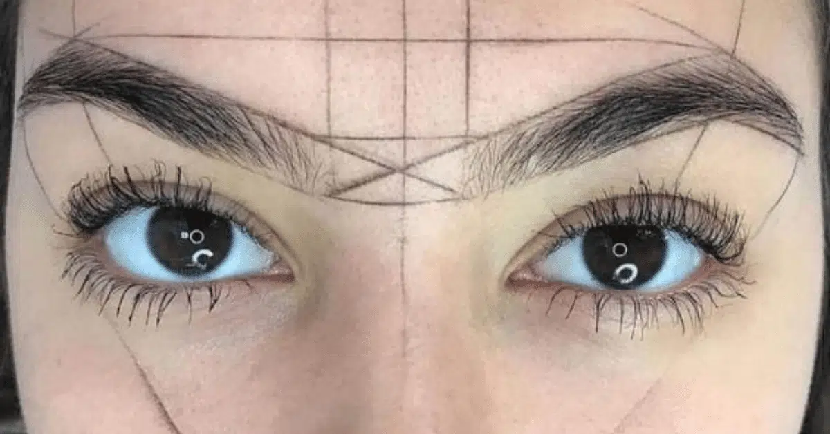 A sobrancelha deve ser arqueada, para saber o sítio correto, coloque a régua no canto externo do nariz e passe pelo canto externo da íris.