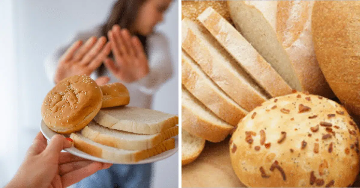Trigo, centeio, cevada, aveia, triticale, espelta, farinhas e todos os derivados, pão, bolos e bolachas, massas, iogurtes com cereais, farinheira e alheira, sopas de pacote, panados, delícias do mar, pizza, lasanha e canelones.